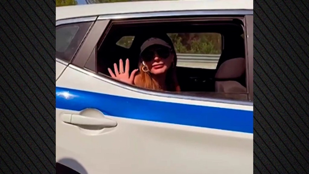 Ωστόσο, όπως αναφέρεται, έσκασε το λάστιχο του οχήματος στην Εθνική Οδό, με αποτέλεσμα η μεταφορά της στο ξενοδοχείο, όπου θα έμενε, να γίνει με περιπολικό της αστυνομίας.