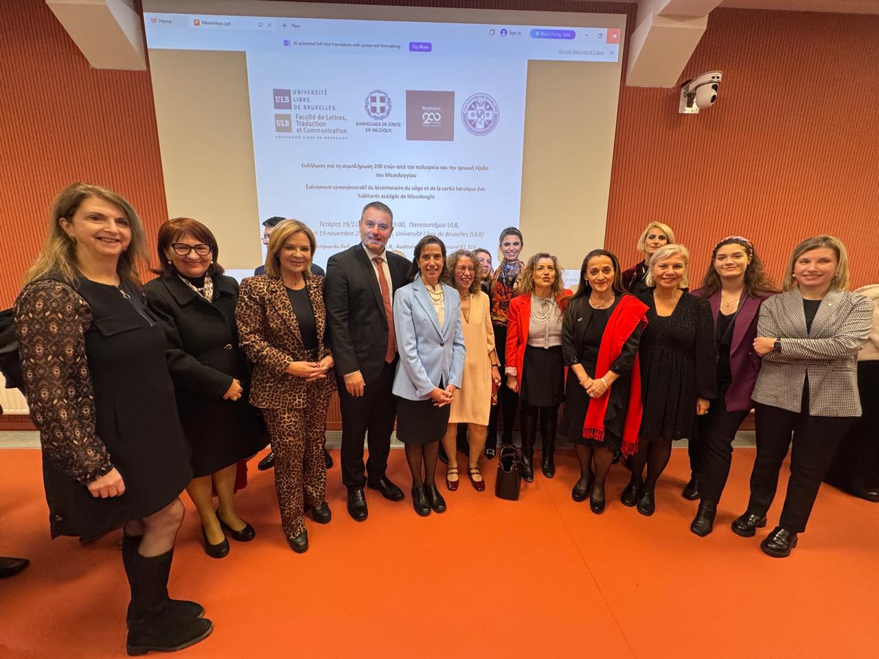 Την Τετάρτη 19 Νοεμβρίου, οι εκδηλώσεις συνεχίστηκαν στο Université Libre de Bruxelles (ULB), σε διοργάνωση της Πρεσβείας της Ελλάδας στο Βέλγιο, της Σχολής Γραμμάτων, Μετάφρασης και Επικοινωνίας του ULB και του τμήματος Daughters of Penelope – “Θέτις” Βρυξελλών. Χαιρετισμούς απηύθυναν η Πρέσβης της Ελλάδας στο Βέλγιο Σοφία Γραμματά, ο Υφυπουργός Εξωτερικών Ιωάννης Λοβέρδος, ο Δήμαρχος Ι.Π. Μεσολογγίου και ο Παναγιώτης Γιωτόπουλος. Η εκδήλωση περιλάμβανε μουσικό πρόγραμμα, προβολές επετειακών βίντεο και κεντρική ομιλία του συγγραφέα και πρώην Επικεφαλής της Αντιπροσωπείας της Ευρωπαϊκής Επιτροπής στην Ολλανδία και το Βέλγιο, κ. Jimmy Jamar, με θέμα τον Φιλελληνισμό και τη διαχρονική του σημασία.